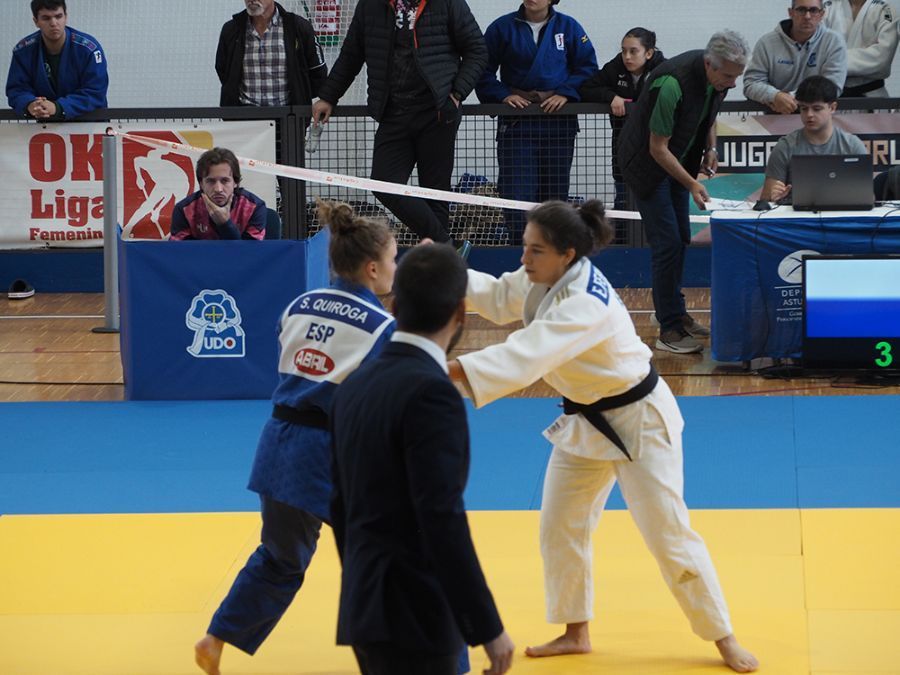 El camino de Claudia Lora, la otra representante senior del equipo, fue muy distinto. La actual campeona de Asturias arrancó con mal pie ante Ferreras y sufrió una luxación en un codo previamente lesionado la temporada pasada, lo que condicionó su competición. Aun así, no se vino abajo y mostró carácter en la repesca: ganó con autoridad a una rival gijonesa imponiéndose por ippon y terminó alcanzando el bronce tras un nuevo enfrentamiento entre compañeras, esta vez contra Sara Zapatero. “Cuando se enfrentan entre ellas nunca se sabe qué puede pasar, pero Claudia sacó su carácter de veterana. Y aunque Sara no subió al podio, me quedo muy contento con su actuación”, destacaba su técnico.
